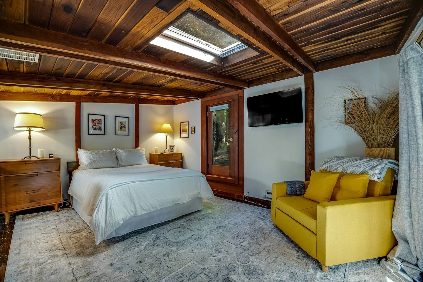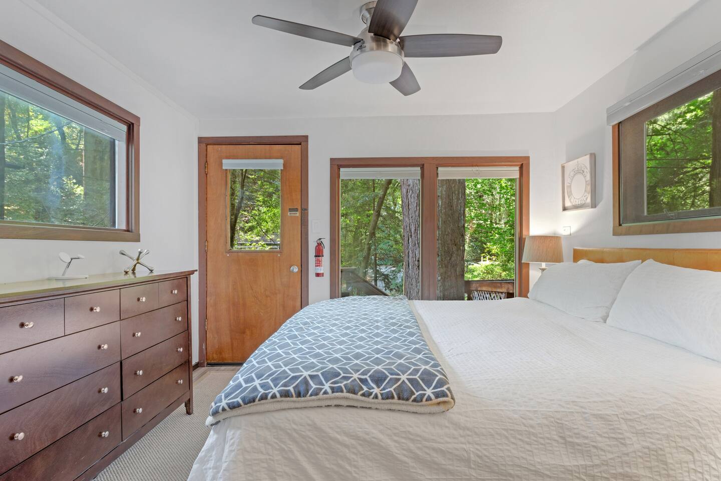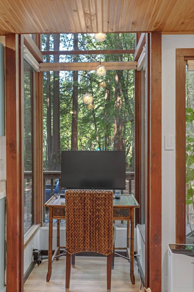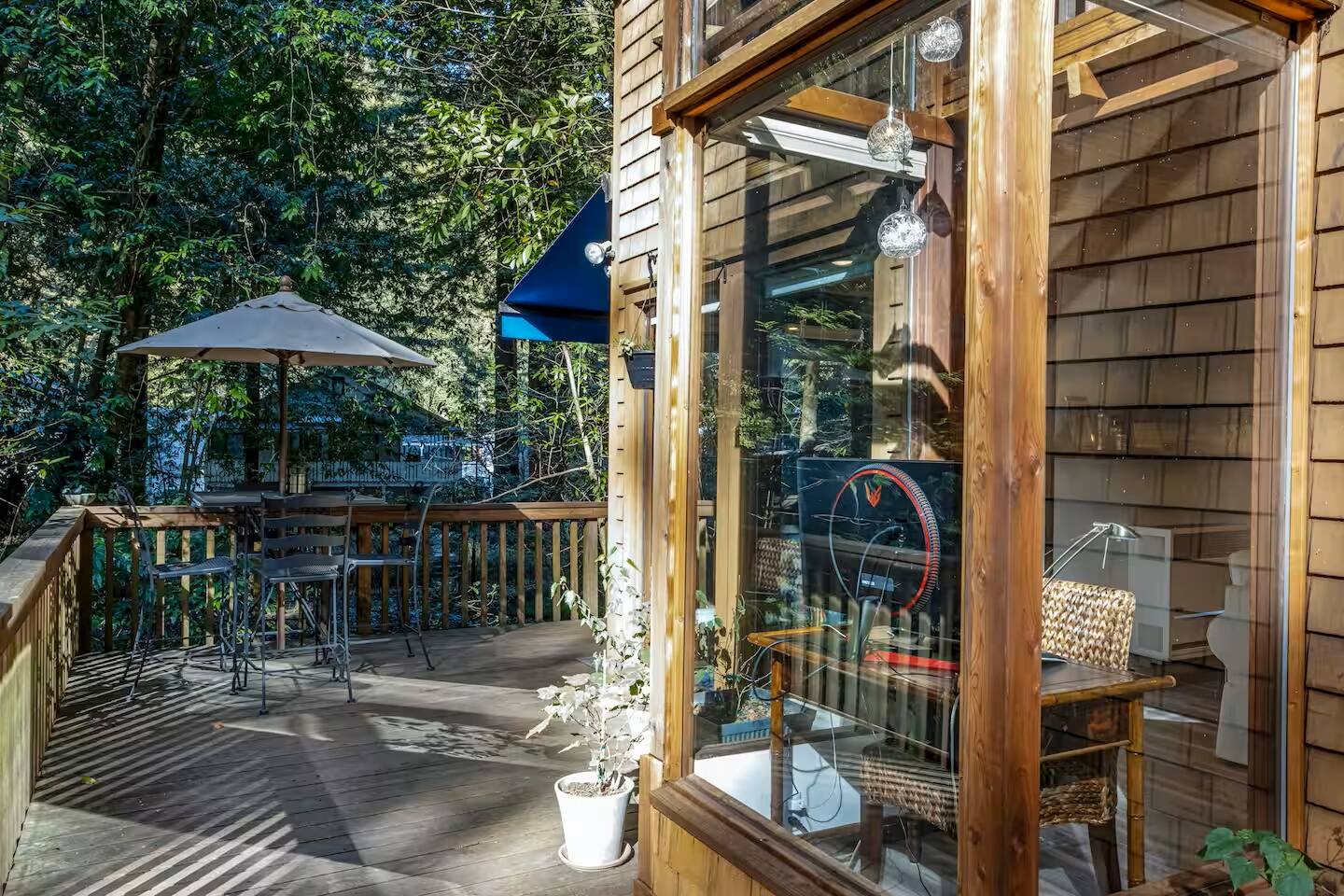 Cabana Del Rio, by Vinifera Homes, feels like a deep breath of fresh forest air. Surrounded by trees and soft birdsong, it’s a cozy place to reconnect with yourself, your people, and the rhythm of nature. Whether you’re planning a quiet weekend or a laid-back adventure, this home makes it easy to feel grounded and at ease. The heart of the home is a cozy open-concept space where expansive windows welcome in the sunlight and views of the surrounding forest. The propane heater keeps things toasty when it’s chilly out, creating the perfect space for coffee in the morning or a movie night after a day by the river. On the main level, you'll find a restful bedroom with a king-size bed. Upstairs, a lofted second bedroom offers a queen bed and a cozy chair that converts into a single sleeper. It’s great for families, friends, or couples who want a bit of extra space. The kitchen is fully equipped with a full-sized fridge, stovetop oven, microwave, and all the essentials for cooking at home—whether it’s a full dinner or just wine country snacks between tasting. If you need to catch up on some work, a dedicated workspace with a monitor is available for your use. The best thing about this is that your home office space faces the tranquil forest. Here you’ll experience what work-life balance truly means! The back deck will definitely entice you to spend your whole stay there. It’s private and peaceful, with a grill for casual meals or steak night, a firepit table that’s perfect for s’mores, and just enough space to stretch out and relax. At night, the hot tub under the trees is the perfect spot to soak and recharge. “This Home was absolutely amazing, me & my husband spent our 1 year wedding anniversary here just for the weekend. Was very peaceful, Hot tub was the best part! The redwoods surrounding the home was very nice & to hear the sounds of the creek flowing, while sitting on the deck relaxing was the best part.” - Athena Located 3-mins from downtown Guerneville, you’ll have easy access to restaurants, shops, and river adventures. Armstrong Redwoods State Reserve is only 7 minutes away for hikes beneath towering trees, and the surrounding area is filled with wineries like the Korbel Champagne Cellars,and Porter-Bass Vineyard & Winery. The Bohemian Highway offers one of the most scenic drives in Sonoma County—perfect for a lazy afternoon of winding roads and redwood views. Even though the home feels tucked away, it’s in a convenient spot. You’re close to it all but just far enough to enjoy the quiet. You can walk about half a mile to local tennis, pickleball, and basketball courts if you're in the mood for something active. **Highlights** - Towering redwoods surrounding the home - Large windows to frame the serene forest - BBQ grill with utensils and complimentary propane - A firepit to keep you warm while stargazing on the balcony. A little tip: Bring some marshmallows for a smore's night! - A dedicated workspace with a monitor - just connect your laptop! - Secluded location, yet minutes from downtown Guerneville - Private hot tub under the trees with partial cover - There are a selection of games and books for you to enjoy while you are here. - Privacy blinds in each room Whether you’re enjoying a glass of wine on the deck, dipping into the hot tub under the stars, or curling up with a movie after a day at the river, Cabana Del Rio is the kind of place that stays with you. If you’re craving calm, comfort, and connection, this redwood retreat is waiting for you. “Great place nestled in the woods by a beautiful creek! The pictures don't do it justice, that's for sure! You're close to other houses but you do feel tucked and out of the way. Coffee on the porch with the fire table on listening to the birds and the creek was amazing.” - Idona ✨ Optional Trip Planning ✨ Want help planning your wine country getaway? We recommend working with Melanie, a local concierge who offers personalized trip planning, winery reservations, spa bookings, private chefs, and more. Melanie is a third-party provider, but we’ve worked with her for years and highly recommend her to our guests. If interested, we’ll share her contact details after you book.