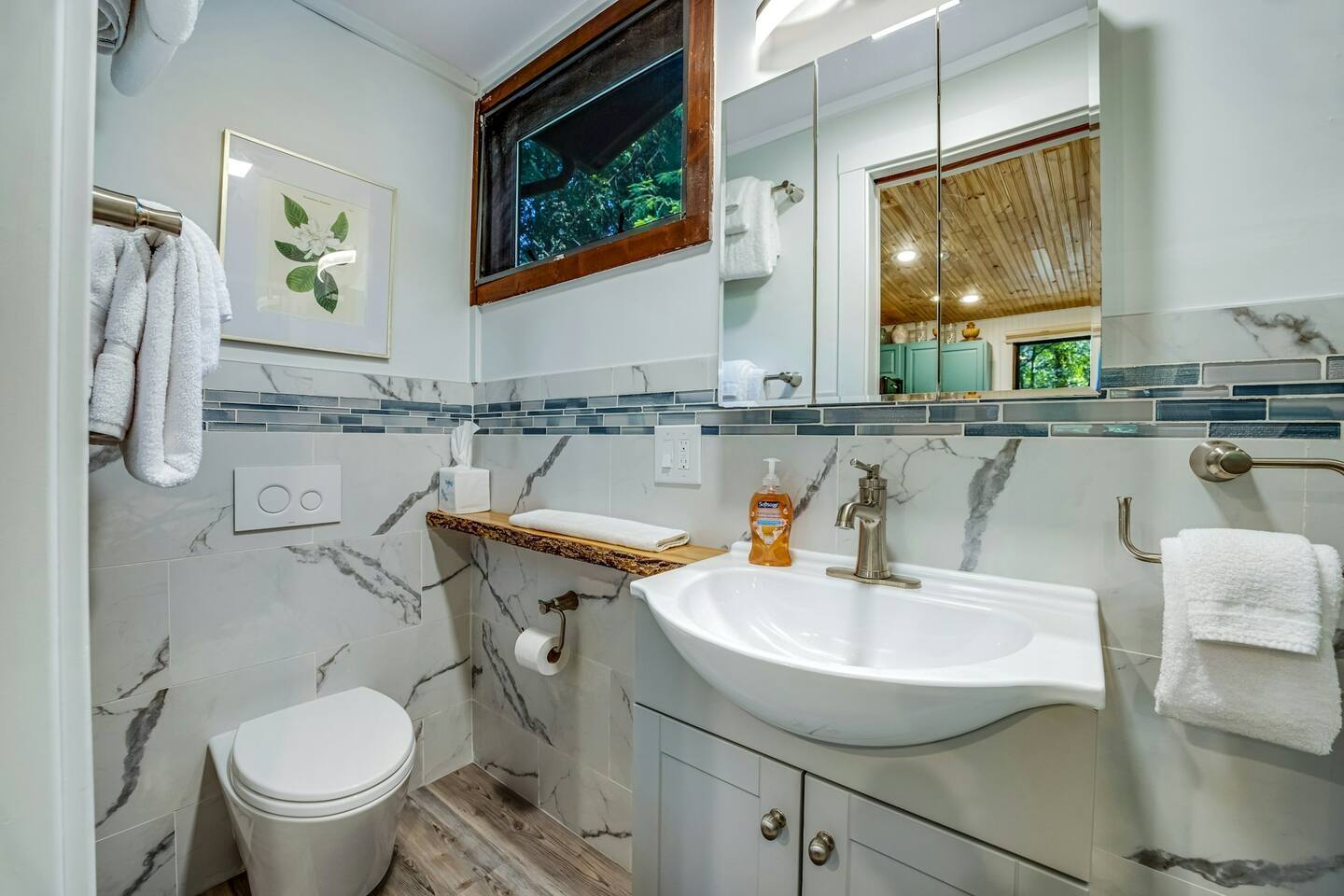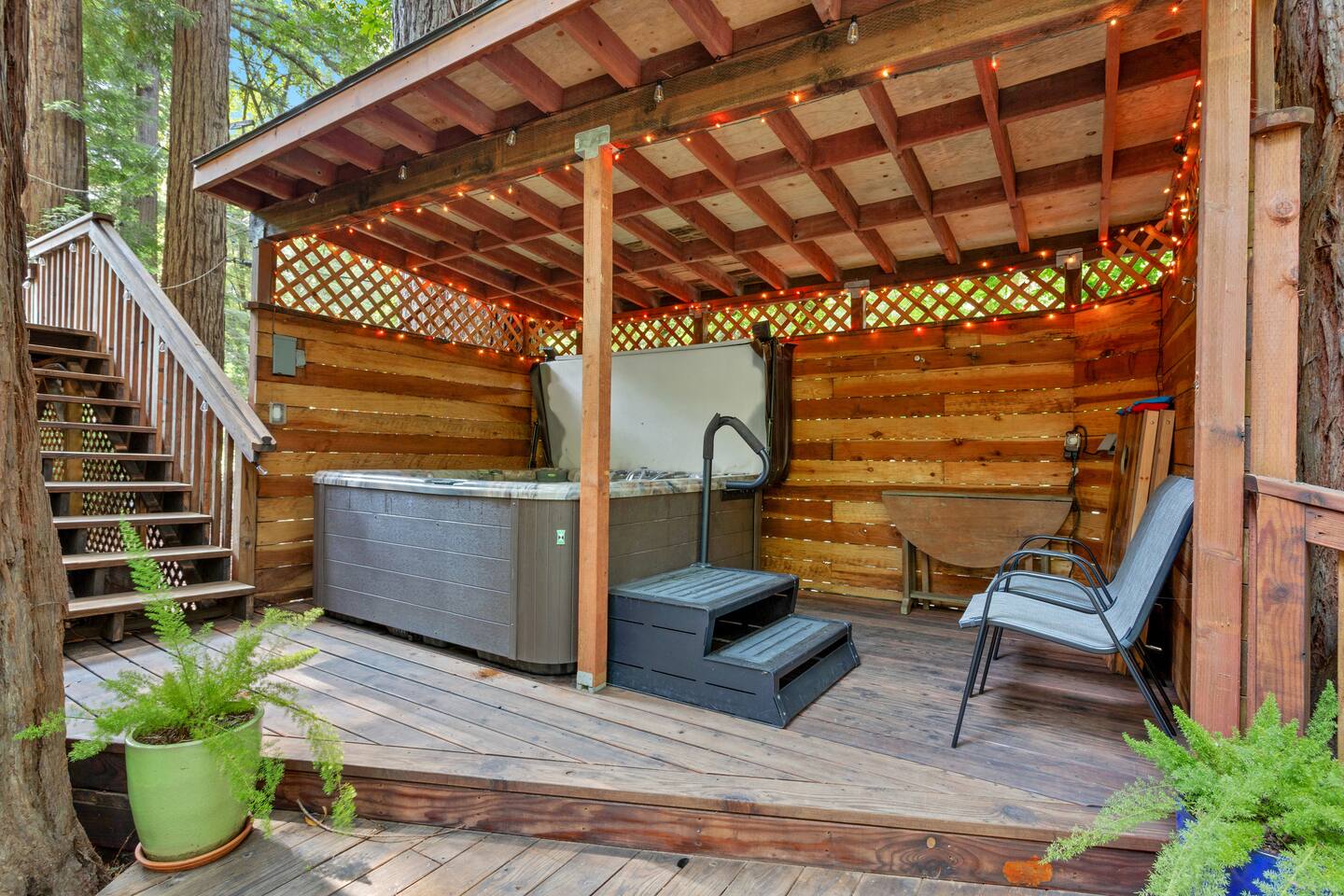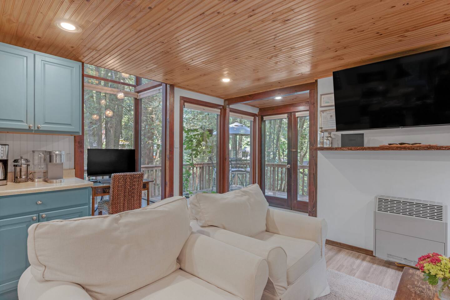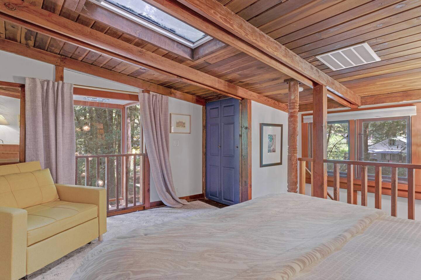 Cabana Del Rio, by Vinifera Homes, feels like a deep breath of fresh forest air. Surrounded by trees and soft birdsong, it’s a cozy place to reconnect with yourself, your people, and the rhythm of nature. Whether you’re planning a quiet weekend or a laid-back adventure, this home makes it easy to feel grounded and at ease. The heart of the home is a cozy open-concept space where expansive windows welcome in the sunlight and views of the surrounding forest. The propane heater keeps things toasty when it’s chilly out, creating the perfect space for coffee in the morning or a movie night after a day by the river. On the main level, you'll find a restful bedroom with a king-size bed. Upstairs, a lofted second bedroom offers a queen bed and a cozy chair that converts into a single sleeper. It’s great for families, friends, or couples who want a bit of extra space. The kitchen is fully equipped with a full-sized fridge, stovetop oven, microwave, and all the essentials for cooking at home—whether it’s a full dinner or just wine country snacks between tasting. If you need to catch up on some work, a dedicated workspace with a monitor is available for your use. The best thing about this is that your home office space faces the tranquil forest. Here you’ll experience what work-life balance truly means! The back deck will definitely entice you to spend your whole stay there. It’s private and peaceful, with a grill for casual meals or steak night, a firepit table that’s perfect for s’mores, and just enough space to stretch out and relax. At night, the hot tub under the trees is the perfect spot to soak and recharge. “This Home was absolutely amazing, me & my husband spent our 1 year wedding anniversary here just for the weekend. Was very peaceful, Hot tub was the best part! The redwoods surrounding the home was very nice & to hear the sounds of the creek flowing, while sitting on the deck relaxing was the best part.” - Athena Located 3-mins from downtown Guerneville, you’ll have easy access to restaurants, shops, and river adventures. Armstrong Redwoods State Reserve is only 7 minutes away for hikes beneath towering trees, and the surrounding area is filled with wineries like the Korbel Champagne Cellars,and Porter-Bass Vineyard & Winery. The Bohemian Highway offers one of the most scenic drives in Sonoma County—perfect for a lazy afternoon of winding roads and redwood views. Even though the home feels tucked away, it’s in a convenient spot. You’re close to it all but just far enough to enjoy the quiet. You can walk about half a mile to local tennis, pickleball, and basketball courts if you're in the mood for something active. **Highlights** - Towering redwoods surrounding the home - Large windows to frame the serene forest - BBQ grill with utensils and complimentary propane - A firepit to keep you warm while stargazing on the balcony. A little tip: Bring some marshmallows for a smore's night! - A dedicated workspace with a monitor - just connect your laptop! - Secluded location, yet minutes from downtown Guerneville - Private hot tub under the trees with partial cover - There are a selection of games and books for you to enjoy while you are here. - Privacy blinds in each room Whether you’re enjoying a glass of wine on the deck, dipping into the hot tub under the stars, or curling up with a movie after a day at the river, Cabana Del Rio is the kind of place that stays with you. If you’re craving calm, comfort, and connection, this redwood retreat is waiting for you. “Great place nestled in the woods by a beautiful creek! The pictures don't do it justice, that's for sure! You're close to other houses but you do feel tucked and out of the way. Coffee on the porch with the fire table on listening to the birds and the creek was amazing.” - Idona ✨ Optional Trip Planning ✨ Want help planning your wine country getaway? We recommend working with Melanie, a local concierge who offers personalized trip planning, winery reservations, spa bookings, private chefs, and more. Melanie is a third-party provider, but we’ve worked with her for years and highly recommend her to our guests. If interested, we’ll share her contact details after you book.