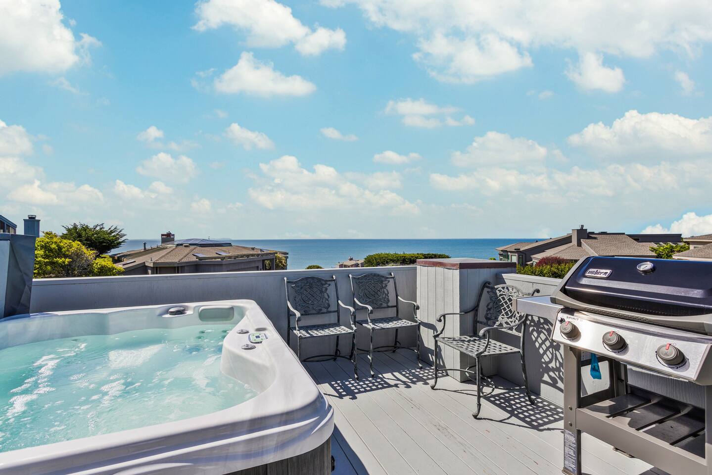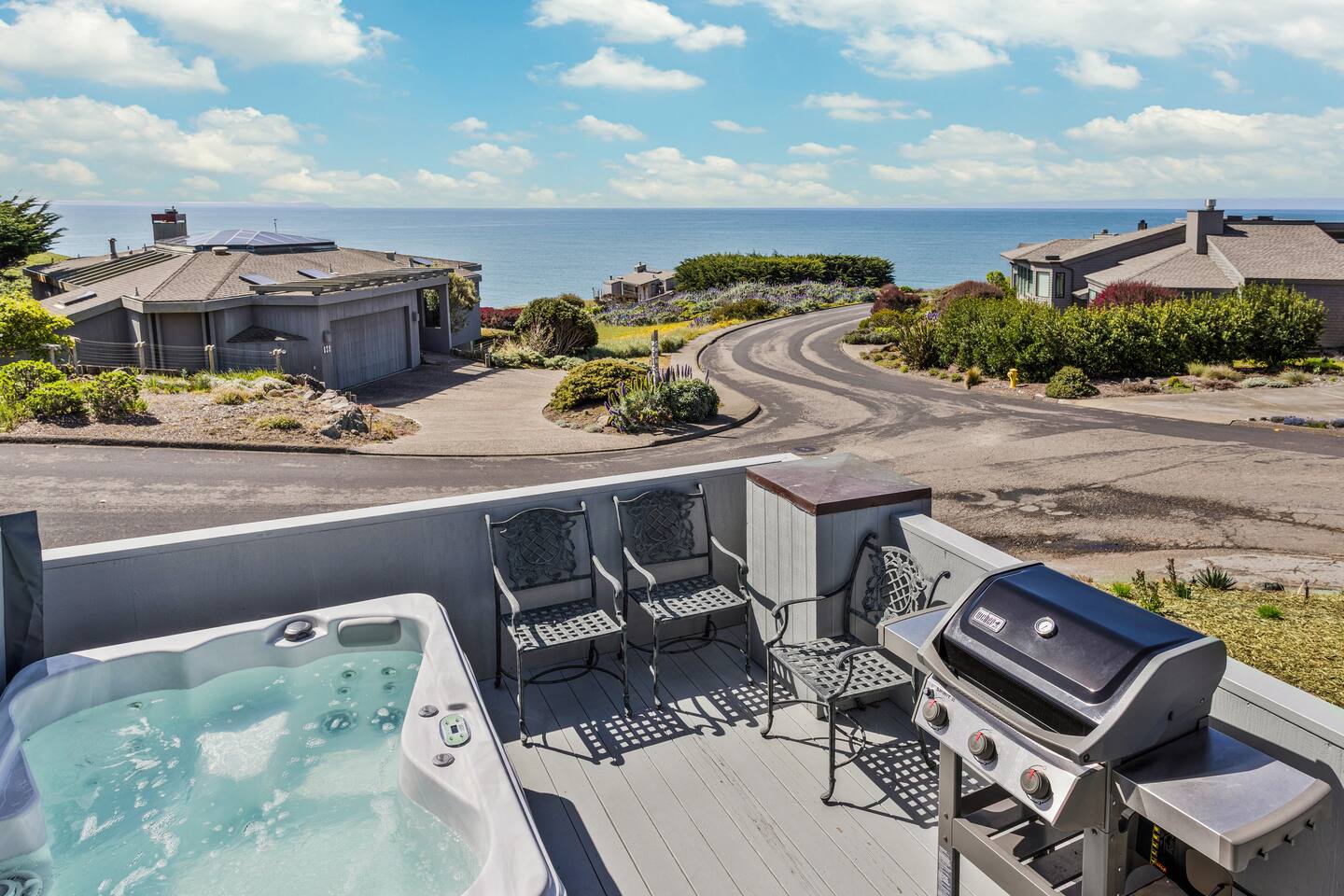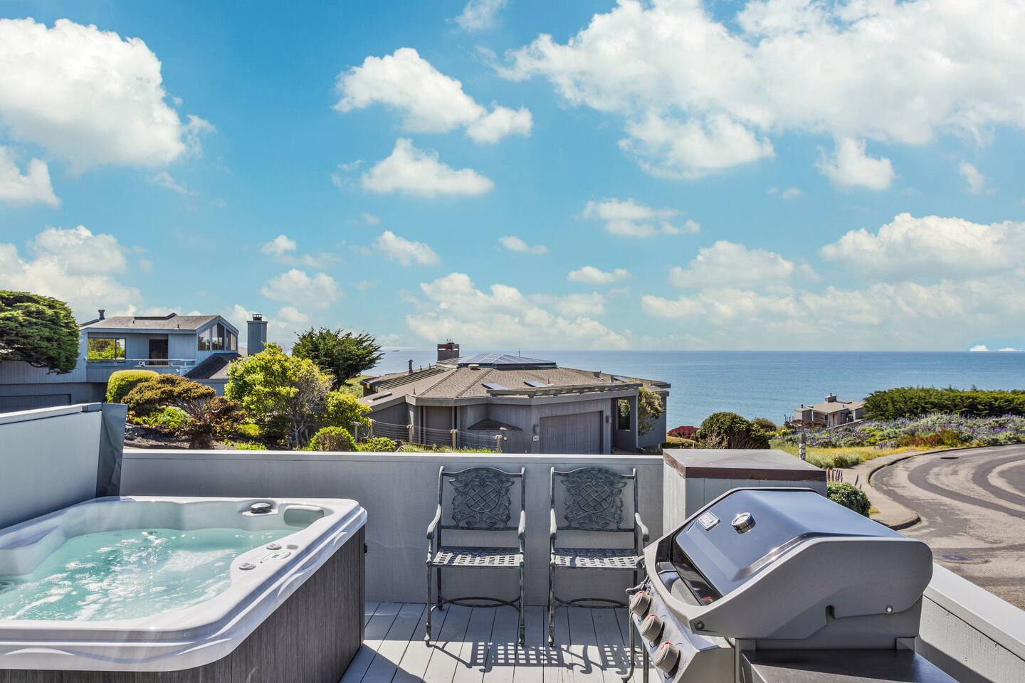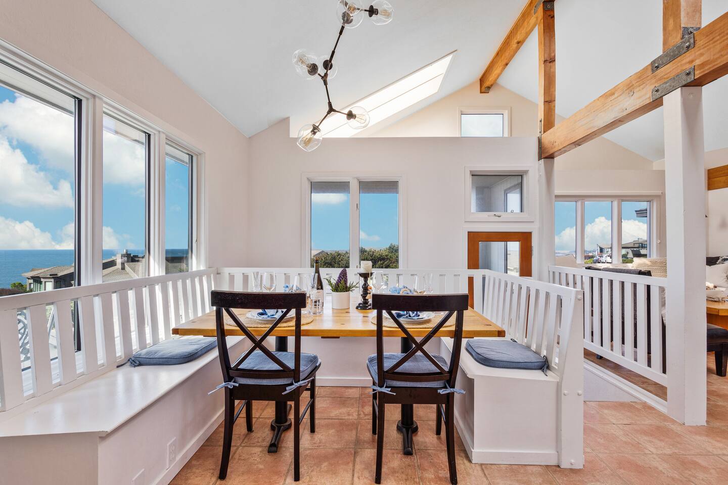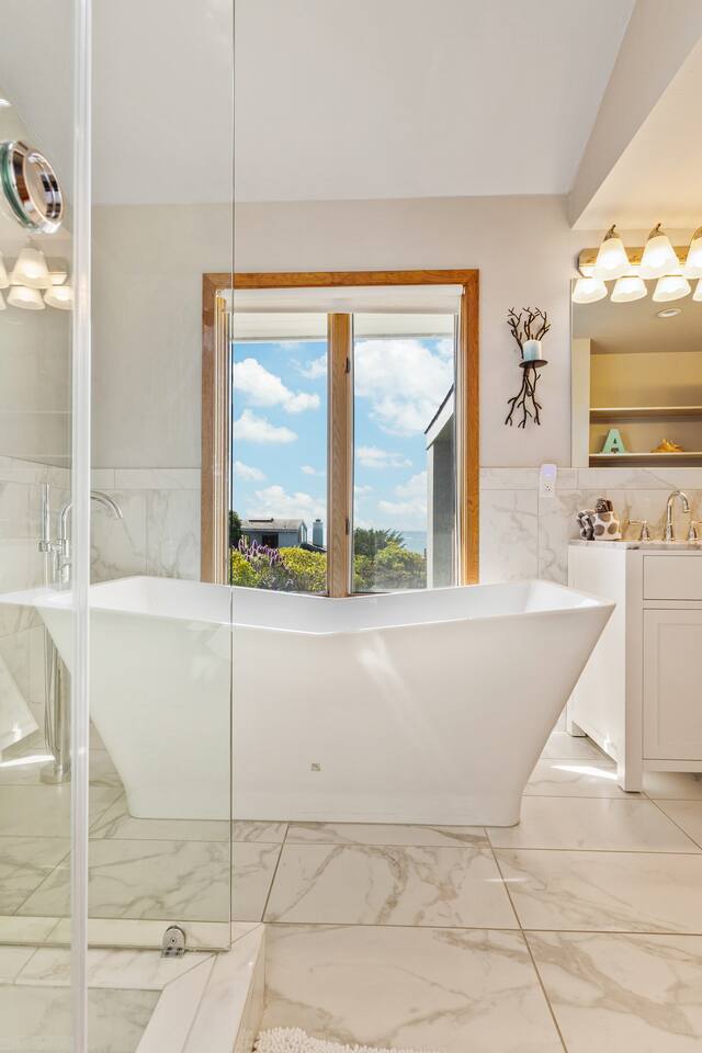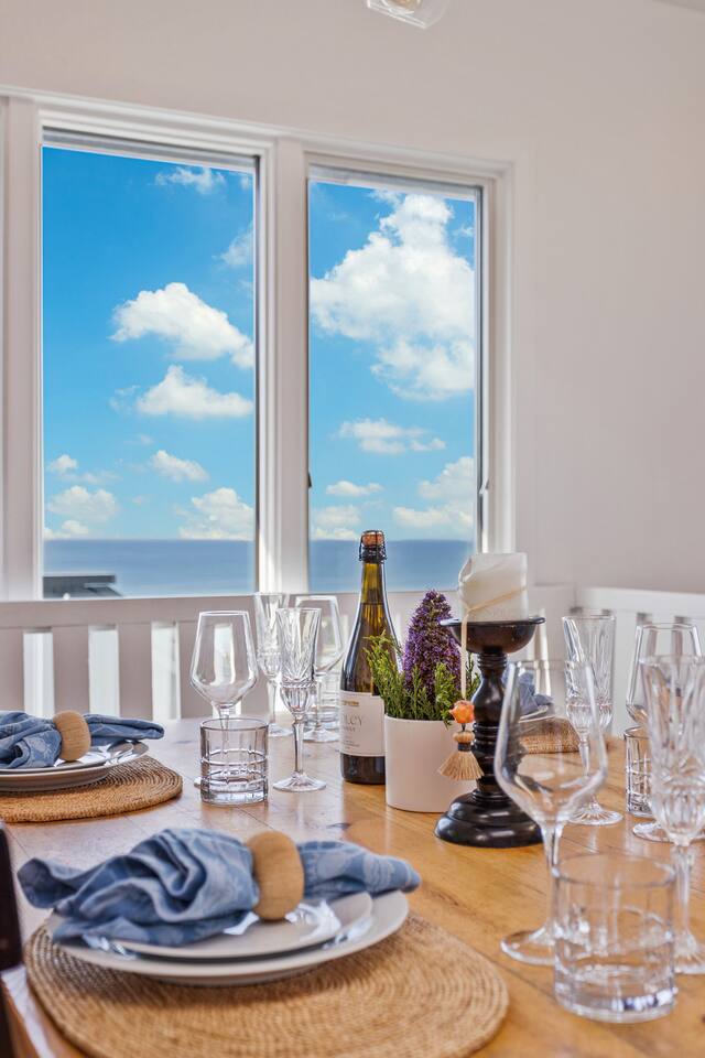 ✨ Brand new to Airbnb! Managed by Vinifera Homes, an experienced Superhost with 70+ 5⭐ reviews across other properties. Step inside a tranquil coastal retreat where the sound of crashing waves and sweeping ocean views create a deeply relaxing atmosphere. Designed for both comfort and connection, Pelican’s Rest offers open, sunlit spaces that invite conversation, reflection, and togetherness. Out on the deck, sip your morning coffee as waves crash below, or enjoy a glass of wine at sunset while grilling dinner and taking in the cool ocean breeze. After a day of exploring the coast, sink into the hot tub and let the warmth melt your cares away. Whether you're unwinding under the stars or easing into the day with a peaceful morning soak, the hot tub is always ready for you. Inside, the main living area features plush seating, a cozy fireplace, and expansive windows that fill the room with natural light and panoramic ocean views. Whether you're curled up with a book, sharing stories by the fire, or watching a Pacific sunset, this space encourages total relaxation. The modern kitchen—with butcher block counters, beachy blue-and-white cabinetry, is both functional and charming. Cook a seaside feast or enjoy casual breakfasts with ocean breezes drifting through the windows. Bedrooms are outfitted with plush bedding and a calming coastal aesthetic. Two California king beds offer luxurious rest, while the loft queen bed provides a bright, airy sleeping nook (best for guests who don’t need total privacy). Whether you're here for a quick recharge or a longer stay, this is the kind of place that stays with you. “What a lovely, quirky little place with an incredible seaside vibe. It's just a short walk to the beach, nearby everything in and around Bodega Bay too. With lovely indoor and outdoor places to enjoy the incredible views. Comfortable for our whole family.” - Judd When you're ready to explore, some of the best coastal attractions, scenic trails, and incredible dining experiences are just minutes away. > Savor local favorites: Bodega Head (8-min drive) – Cliffside trails and whale watching with incredible ocean views Doran Beach (10-min drive) – A wide, sandy beach perfect for picnics and relaxing walks Sonoma Coast State Park (15-min drive) – Rugged coastline, dramatic cliffs, and scenic hikes > Seafood lovers will be in heaven with local favorites: Spud Point Crab Company (7-min drive), famous for its fresh crab sandwiches and creamy clam chowder The Tides Wharf (8-min drive), an iconic waterfront restaurant serving classic coastal fare. Terrapin Creek Café (10-min drive), a Michelin-recognized gem, offers a menu filled with fresh, locally sourced ingredients. > If you’re in the mood for wine tasting: Sonoma Coast Vineyards (12-min drive) | Boutique coastal wines with stunning views Marimar Estate Vineyards (25-min drive) | Spanish-style wines & beautiful vineyard setting No matter the season, Pelican’s Rest offers the perfect balance of peaceful retreat and coastal adventure. We can’t wait to welcome you to Bodega Bay! **Highlights** - Just a short 7-minute walk to the beach with unobstructed ocean views - Two California king beds for ultimate comfort - En-suite bath in the primary bedroom - Deck with panoramic ocean and sunset views - Cozy fireplace and open-concept living area - Loft with queen bed – ideal for flexible sleeping arrangements “Wonderful base for a week of day trips to wineries and activities. I always loved coming home every night to cooler temps and the gorgeous view!!” - Mary Anne ✨ Optional Trip Planning ✨ Want help planning your wine country getaway? We recommend working with Melanie, a local concierge who offers personalized trip planning, winery reservations, spa bookings, private chefs, and more. Melanie is a third-party provider, but we’ve worked with her for years and highly recommend her to our guests. If interested, we’ll share her contact details after you book.