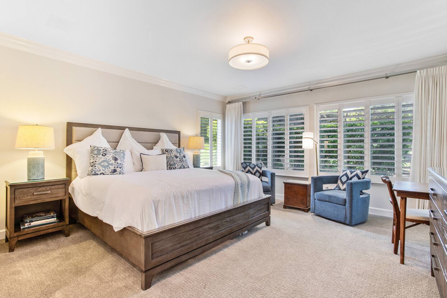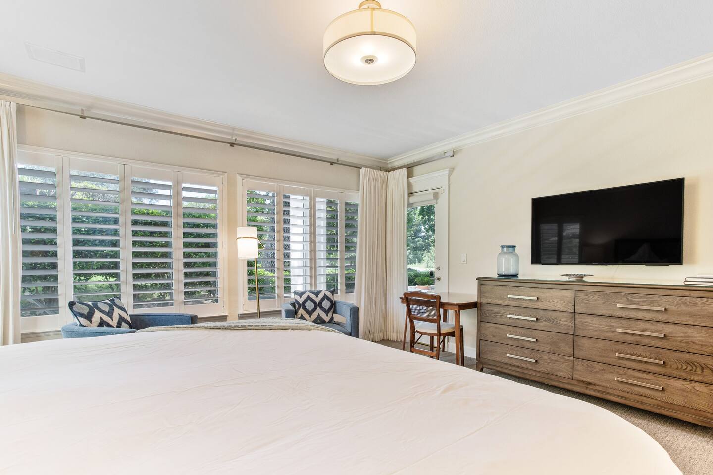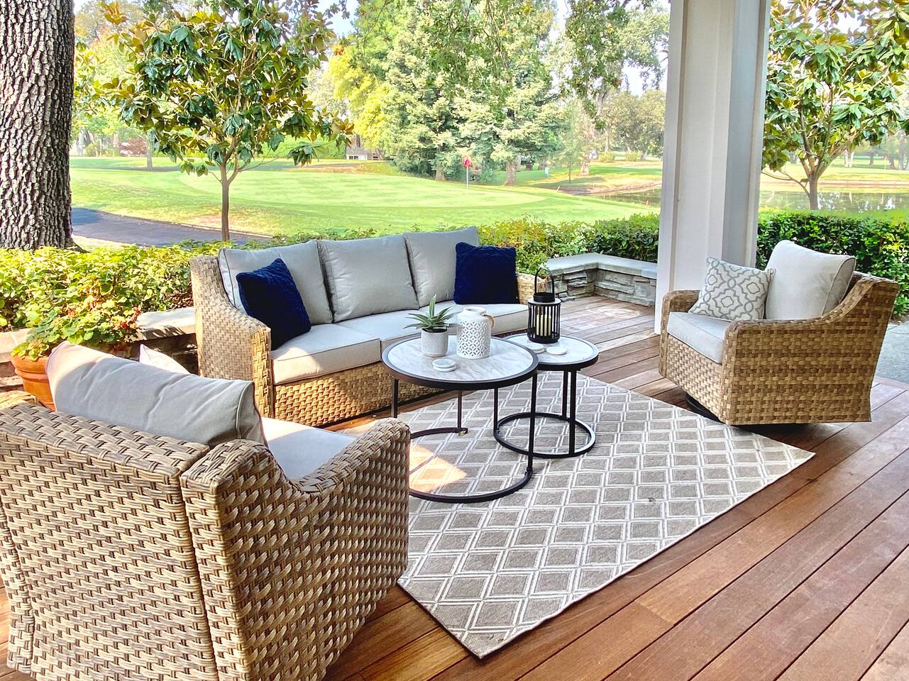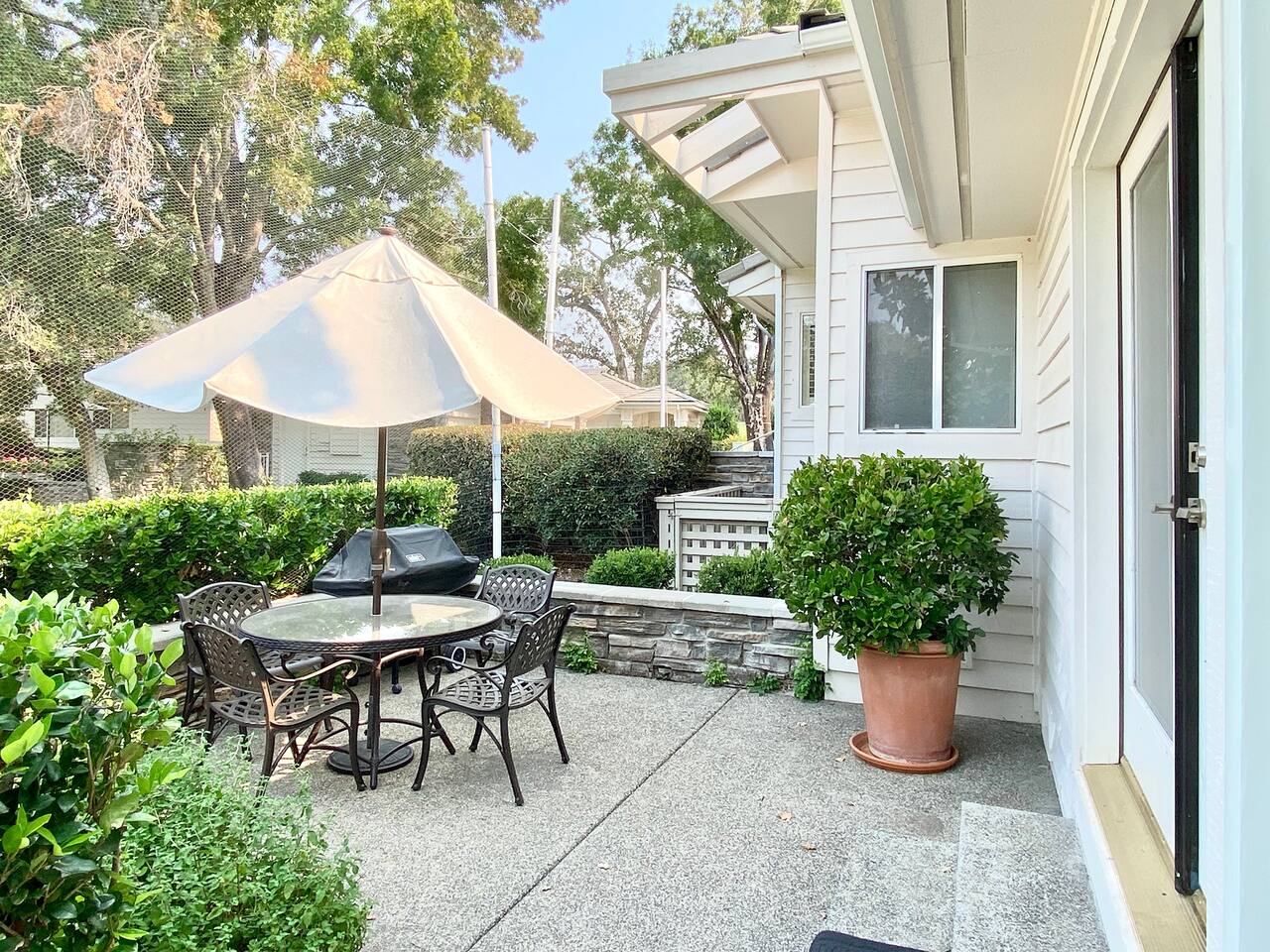 Imagine waking up to the beauty of rolling greens and the soothing charm of Napa Valley’s wine country. Silverado Napa Retreat, a Vinifera Homes property, is located within The Grove—a coveted gated community in the heart of Silverado—where every moment feels like a getaway. Step onto your private deck and take in the sweeping views of the luscious golf course, stretching endlessly before you. The soft morning light dances across the lush landscape, inviting you to savor your coffee as the world awakens. Silverado Napa Retreat is a home where the indoors and outdoors blend seamlessly, creating spaces perfect for relaxation and inspiration. Just a 10-minute stroll away, the iconic Silverado Resort beckons with world-class amenities, while you'll find everything you need within The Grove: a coffee shop to start your day, delightful restaurants for memorable meals, seasonally heated pool and hot tub, tennis courts and a market for everyday essentials—all within the secure comfort of this exclusive community. The Silverado golf course is a highlight of the property, with its meticulously maintained fairways and stunning views. Guests can enjoy easy access to one of the region’s most prestigious courses, whether they wish to play a round, practice their swing, or simply admire the serene beauty of the greens from the comfort of their private deck. The course is famous for hosting professional tournaments, offering a unique opportunity to walk in the footsteps of golfing legends. Silverado Napa Retreat itself is a sanctuary of sophistication and warmth. Bathed in natural light, its spacious interiors invite you to unwind and connect. French doors open to the deck, offering a front-row seat to the serene vistas beyond. Whether you’re hosting a lively gathering or relishing a quiet evening under the stars, this home is the perfect stage for unforgettable moments. For golf enthusiasts, the course is not just nearby; it’s right at your doorstep, promising endless opportunities to refine your game, enjoy a round or two for an additional fee or simply enjoy the scenic splendor. Food and wine lovers will find themselves at the epicenter of Napa Valley’s culinary treasures, with celebrated wineries and fine dining just minutes away. At Silverado Napa Retreat, every detail has been designed to elevate your experience. Here, the beauty of nature meets the comforts of luxury, inviting you to immerse yourself in the essence of Napa Valley living. “We celebrated my wife's birthday in Napa and staying at this home added to the fantastic experience we had. Access to Silverado Resort was fast and easy. This is a central location to all the wineries and our wine transportation came straight to the house to pick us up. This home had all the amenities, plus more. It was clean, easy to check in, and perfect for our group. Thank you!!” - Michael We can accommodate up to six guests, making it the ideal retreat for small families, couples, or a group of friends exploring Napa’s world-renowned wine country. The home features three luxurious bedrooms, each with a plush king-sized bed, offering the ultimate sanctuary for rest after a day of wine tasting or golf. The third bedroom boasts two single-sized beds that can easily be rolled together, providing flexible sleeping arrangements to suit your group’s needs. Fire up the barbecue grill on the deck and savor an evening of outdoor dining amidst the picturesque Napa landscape. Whether grilling fresh, local produce or pairing your meal with a bottle of wine from a nearby vineyard, the home’s inviting ambiance sets the perfect backdrop for a memorable evening under the stars. The deck’s comfortable seating and expansive golf course views ensure that every meal feels like a special occasion. For a truly indulgent culinary experience, the house is located within a short drive to some of Napa Valley’s most celebrated Michelin-starred restaurants. The French Laundry, a global destination for fine dining, is just a 20-minute drive away. For something closer, the Michelin-starred La Toque is only 15 minutes from your doorstep, offering a refined menu of seasonal creations. These iconic restaurants promise to elevate your wine country experience. Wine enthusiasts will find themselves at the celebrated vineyards in Napa. The renowned Stag’s Leap Wine Cellars, known for its exceptional Cabernet Sauvignon, is a quick 10-minute drive. A 15-minute journey brings you to Domaine Carneros, famed for its sparkling wines and elegant château. Rutherford Hill Winery, with its breathtaking hilltop views and Merlot specialties, is just 20 minutes away, ensuring your wine country exploration is both convenient and unforgettable. Conveniently located, the property offers easy access to a wide array of activities. From hot air balloon rides over the vineyards to guided wine tours and golf outings, your days can be as leisurely or adventurous as you desire. Return each evening to the comfort of your private retreat, where you can make a toast to a perfect day on the deck. Every detail has been curated to provide an unforgettable experience. From its stunning views and luxurious interiors to its proximity to Napa’s finest attractions, the home offers a one-of-a-kind gateway to the beauty and charm of wine country. Whether you’re a foodie, wine connoisseur, or nature lover, your dream getaway begins with Silverado Napa Retreat. “Truly a wonderful experience - great relaxing location and an easy drive / Uber into town. Would absolutely stay here again - and the three ensuites were perfect for privacy with plenty of central and outdoor space for mingling.” - Cassandra ✨ Optional Trip Planning ✨ Want help planning your wine country getaway? We recommend working with Melanie, a local concierge who offers personalized trip planning, winery reservations, spa bookings, private chefs, and more. Melanie is a third-party provider, but we’ve worked with her for y